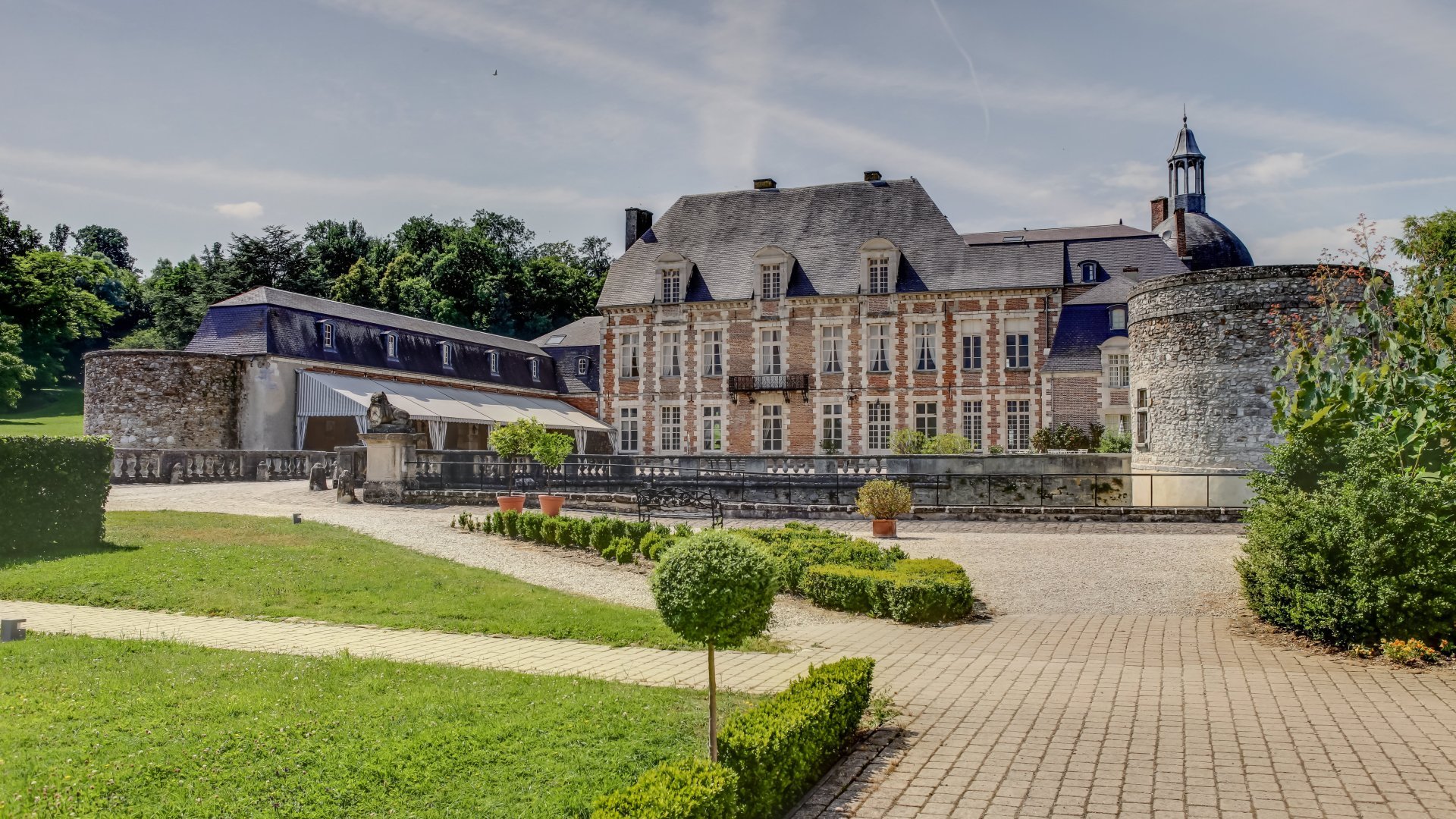 Le charme du château vient de son allure de vaisseau voguant sur les eaux de ses larges douves. Son horizon se compose de jardin à la française et à l’anglaise, d’un jardin potager et d’un verger.